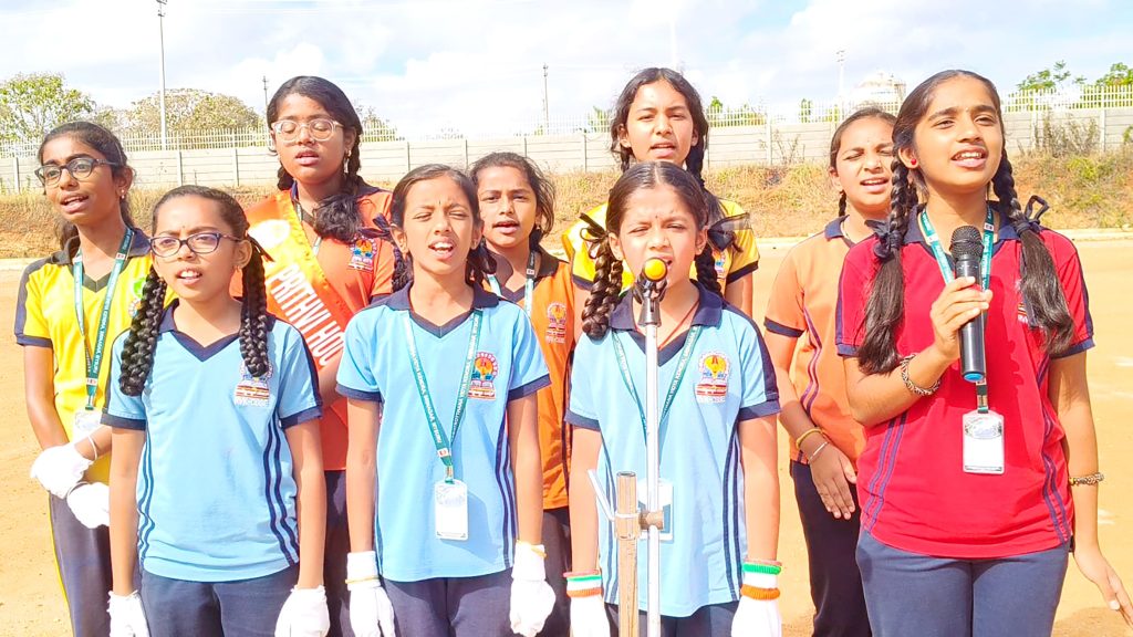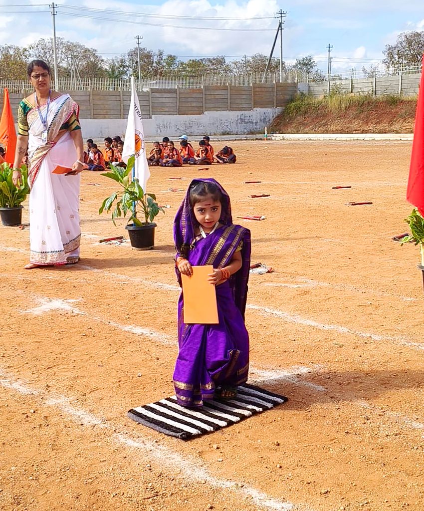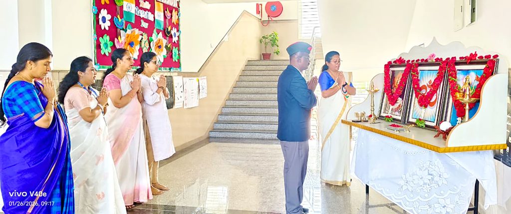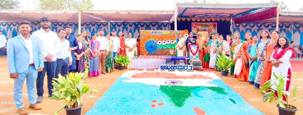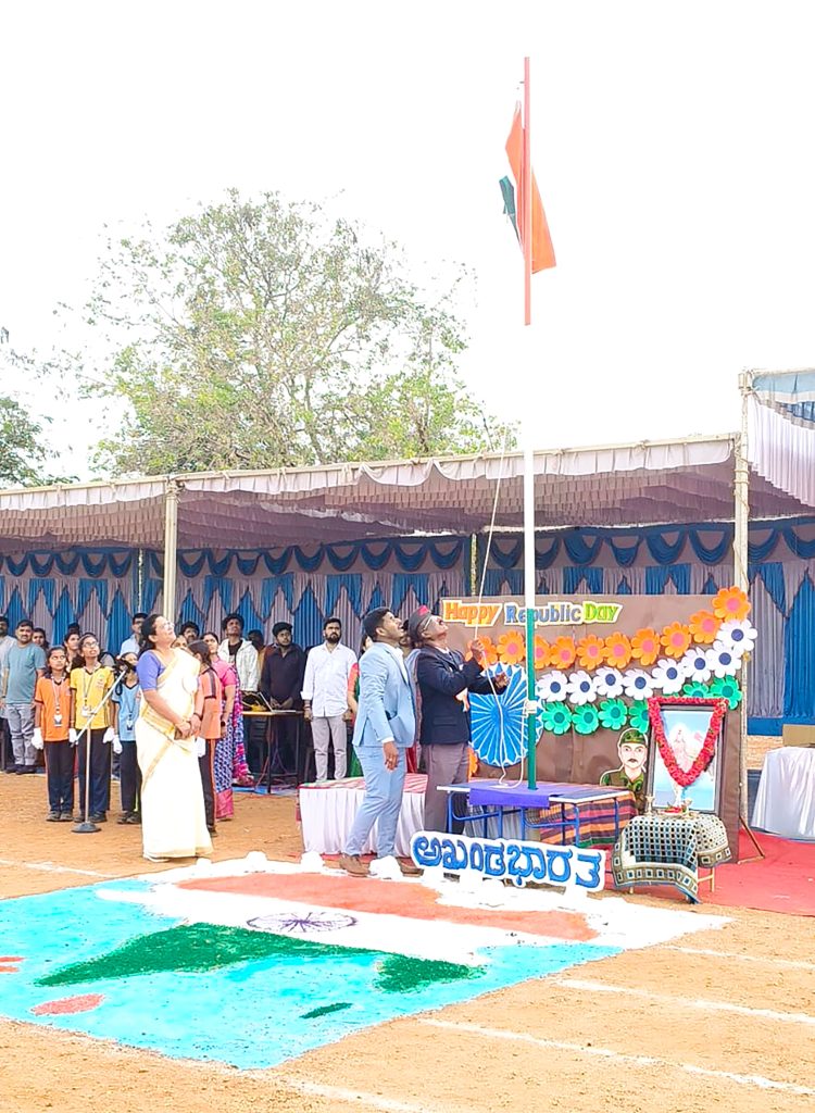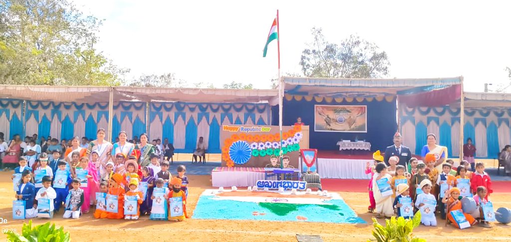 Mysuru, Jan. 26: The 77th Republic Day was celebrated herein Rashtrotthana Vidya Kendra – Srinagar. The chief guest was former soldier Subedar Sri Krishnagowda B.T. and hoisted the flag. The students explained the importance of Republic Day in Hindi and English. The students presented various cultural programmes including patriotic songs, dance performances and leggy performances. Addressing the gathering, the chief guest highlighted the spirit of self-service and said that the Republic of India stands firm today because of the sacrifices of brave soldiers and freedom fighters. He encouraged the students to uphold discipline, unity and patriotism in their daily lives.