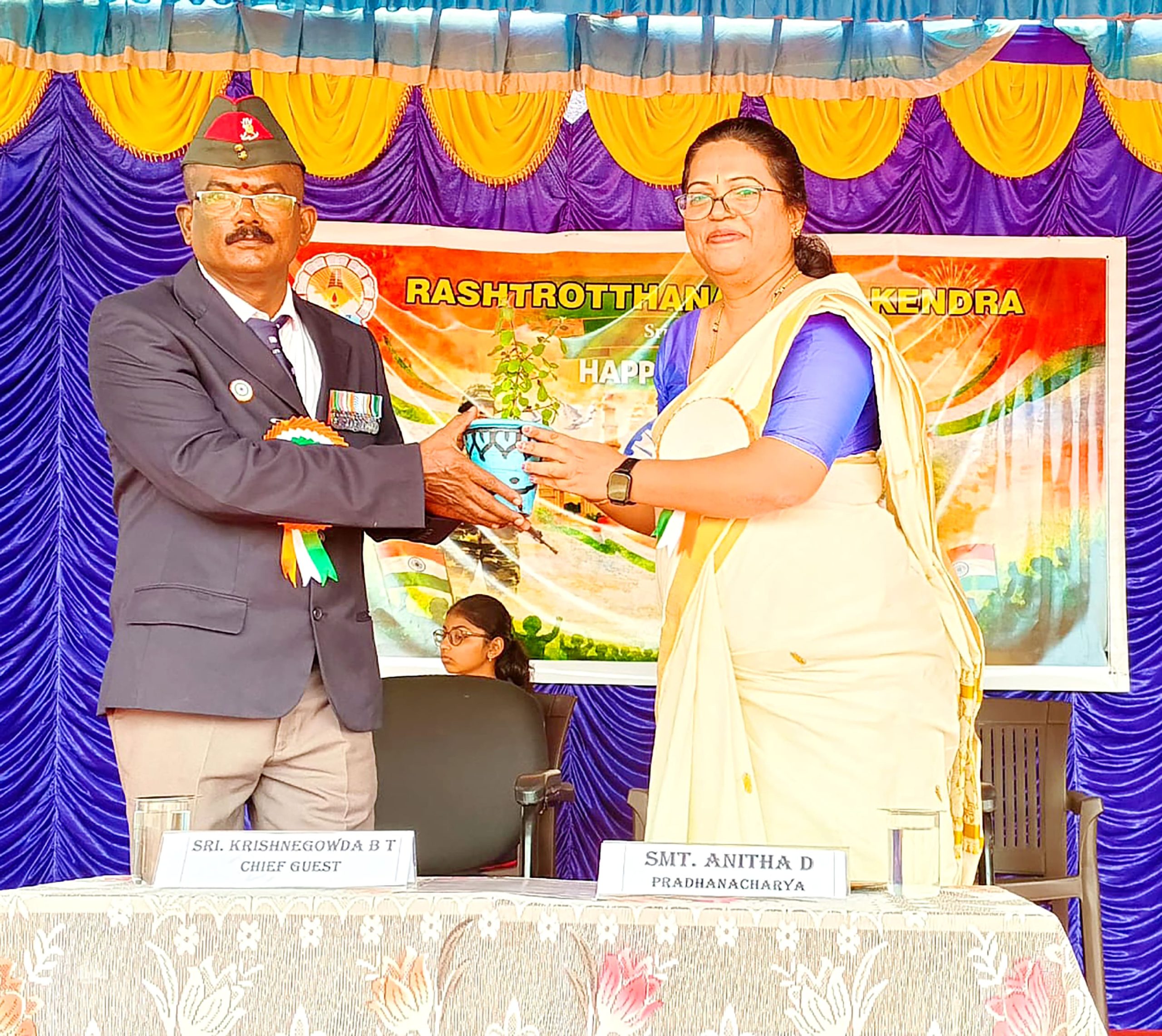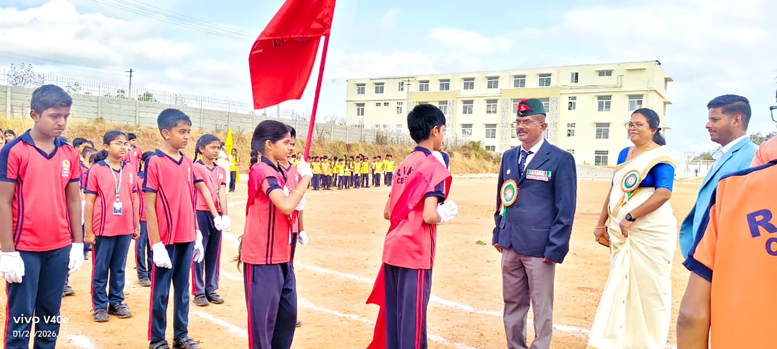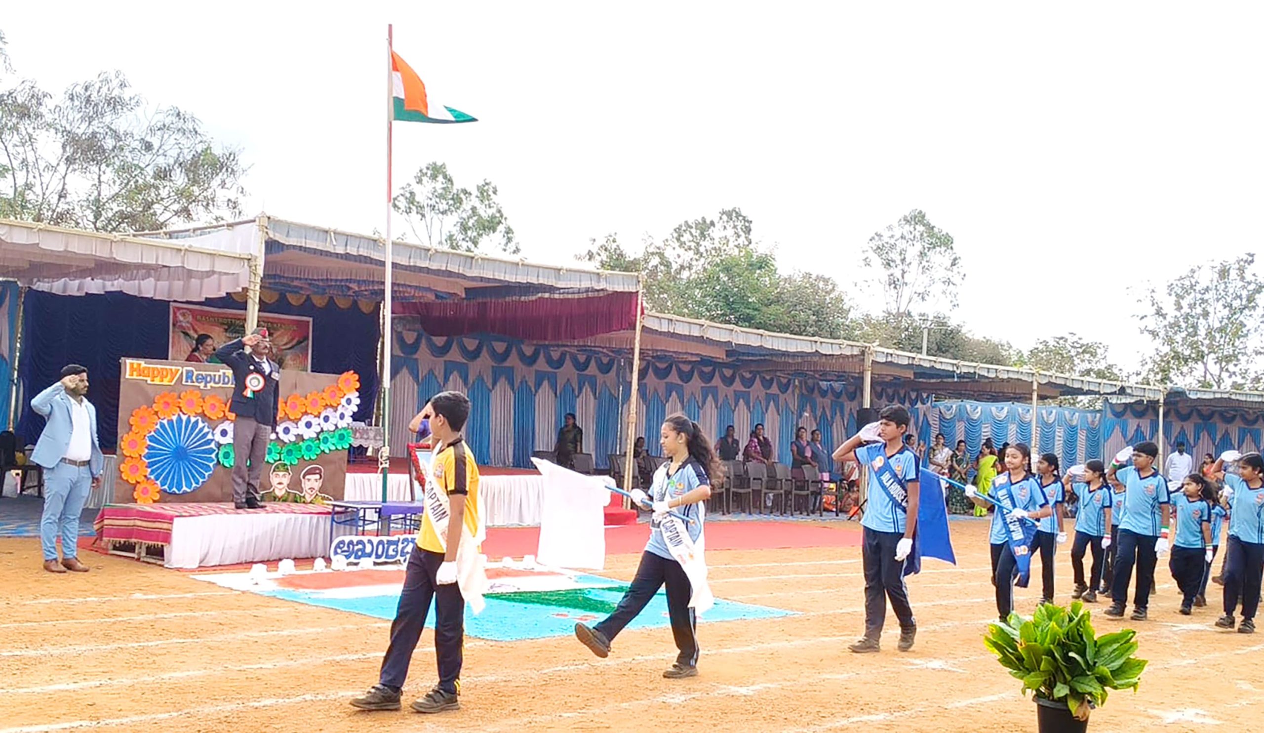 Mysuru, Jan. 26: The 77th Republic Day was celebrated herein Rashtrotthana Vidya Kendra – Srinagar. The chief guest was former soldier Subedar Sri Krishnagowda B.T. and hoisted the flag. The students explained the importance of Republic Day in Hindi and English. The students presented various cultural programmes including patriotic songs, dance performances and leggy performances. Addressing the gathering, the chief guest highlighted the spirit of self-service and said that the Republic of India stands firm today because of the sacrifices of brave soldiers and freedom fighters. He encouraged the students to uphold discipline, unity and patriotism in their daily lives.