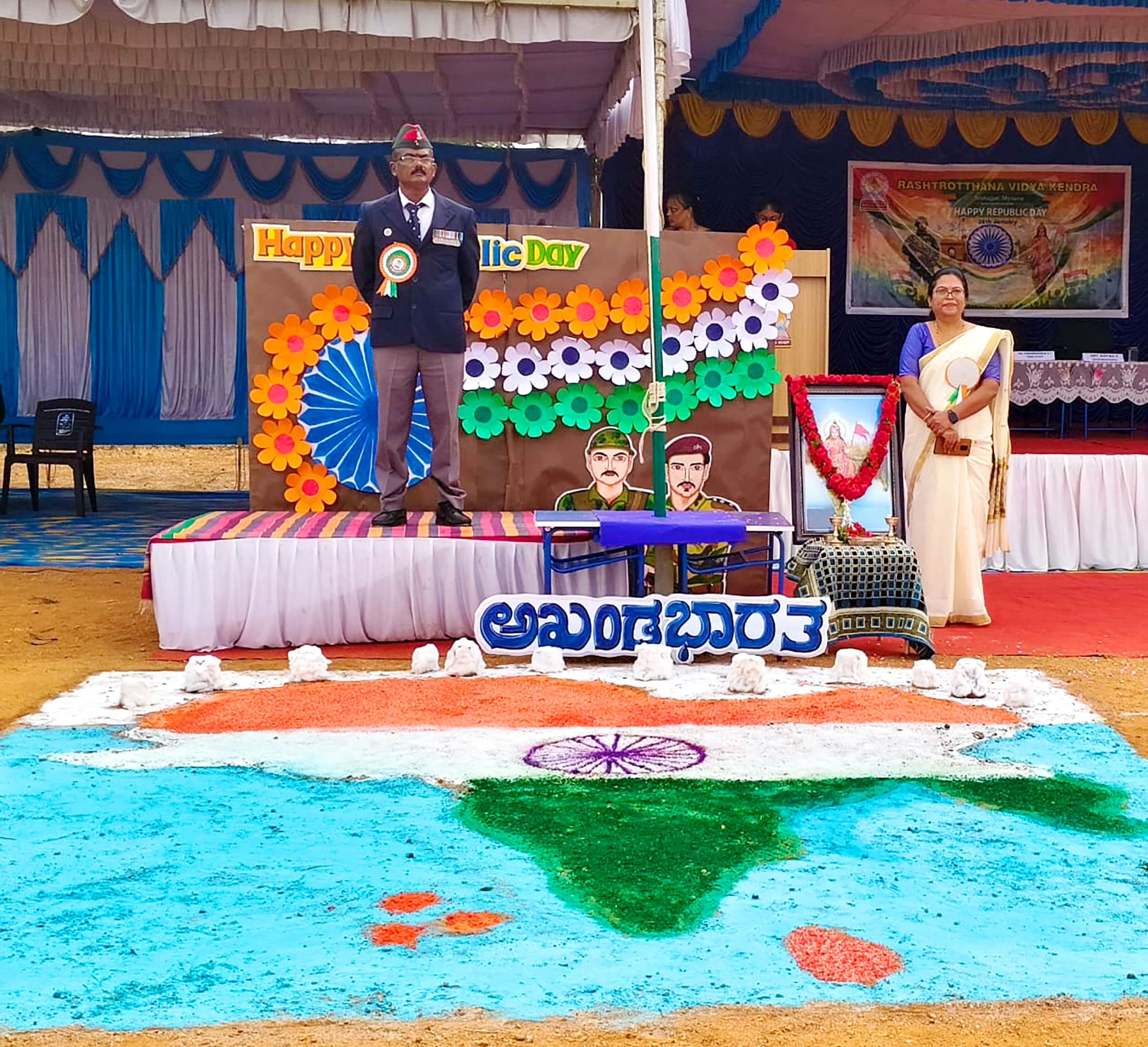 ಮೈಸೂರು, ಜ. 26: ರಾಷ್ಟ್ರೋತ್ಥಾನ ವಿದ್ಯಾಕೇಂದ್ರ – ಶ್ರೀನಗರದಲ್ಲಿ 77ನೇ ಗಣರಾಜ್ಯೋತ್ಸವವನ್ನು ಆಚರಿಸಲಾಯಿತು. ಮುಖ್ಯ ಅತಿಥಿಗಳಾಗಿ ಮಾಜಿ ಸೈನಿಕರಾದ ಸುಬೇದಾರ್ ಶ್ರೀ ಕೃಷ್ಣೇಗೌಡ ಬಿ.ಟಿ. ಅವರು ಆಗಮಿಸಿ ದ್ವಜಾರೋಹಣ ಮಾಡಿದರು. ವಿದ್ಯಾರ್ಥಿಗಳು ಹಿಂದಿ ಮತ್ತು ಇಂಗ್ಲಿಷಿನಲ್ಲಿ ಗಣರಾಜ್ಯೋತ್ಸವದ ಮಹತ್ತ್ವವನ್ನು ವಿವರಿಸಿದರು. ದೇಶಭಕ್ತಿ ಗೀತೆಗಳು, ನೃತ್ಯ ಪ್ರದರ್ಶನಗಳು ಮತ್ತು ಲೆಜಿಮ್ ಪ್ರದರ್ಶನ ಸೇರಿದಂತೆ ವಿದ್ಯಾರ್ಥಿಗಳು ಪ್ರಸ್ತುತಪಡಿಸಿದ ವಿವಿಧ ಸಾಂಸ್ಕೃತಿಕ ಕಾರ್ಯಕ್ರಮಗಳನ್ನು ಪ್ರದರ್ಶಿಸಿದರು. ಸಭೆಯನ್ನುದ್ದೇಶಿಸಿ ಮಾತನಾಡಿದ ಮುಖ್ಯ ಅತಿಥಿಗಳು, ಸ್ವಯಂಸೇವಾ ಮನೋಭಾವವನ್ನು ಎತ್ತಿ ತೋರಿಸಿದರು, ಭಾರತ ಗಣರಾಜ್ಯ ಇಂದು ಸ್ಥಿರವಾಗಿ ನಿಂತಿರುವುದು ವೀರ ಸೈನಿಕರು ಮತ್ತು ಸ್ವಾತಂತ್ರ್ಯ ಹೋರಾಟಗಾರರ ತ್ಯಾಗದಿಂದಾಗಿ ಎಂದು ಹೇಳಿದರು. ವಿದ್ಯಾರ್ಥಿಗಳು ತಮ್ಮ ದೈನಂದಿನ ಜೀವನದಲ್ಲಿ ಶಿಸ್ತು, ಏಕತೆ ಮತ್ತು ದೇಶಭಕ್ತಿಯನ್ನು ಎತ್ತಿಹಿಡಿಯಲು ಅವರು ಪ್ರೋತ್ಸಾಹಿಸಿದರು.