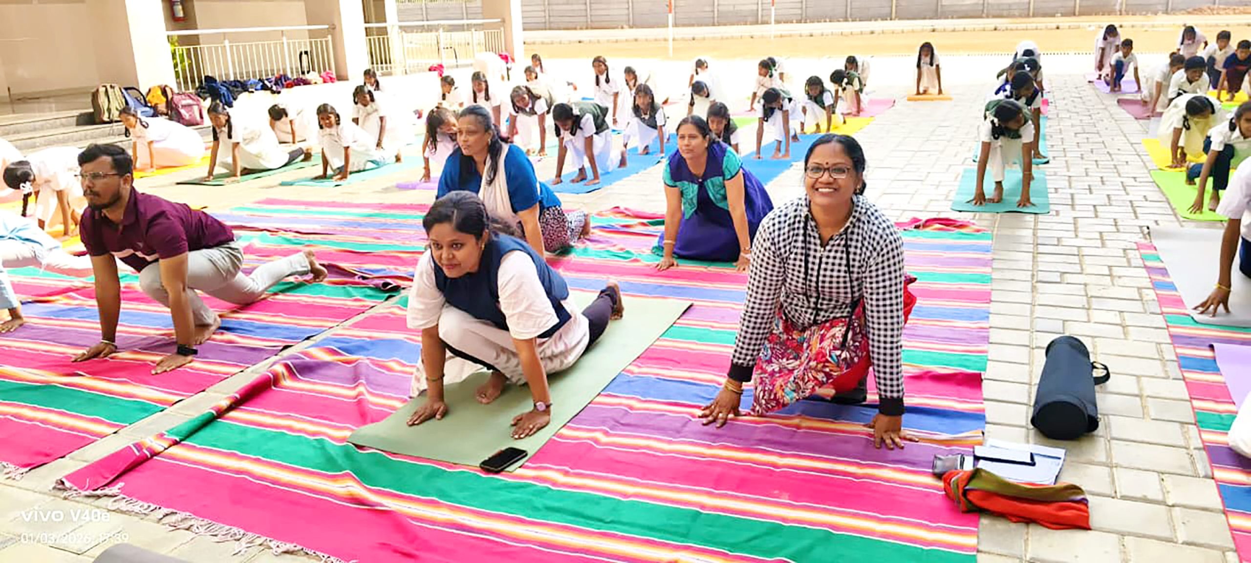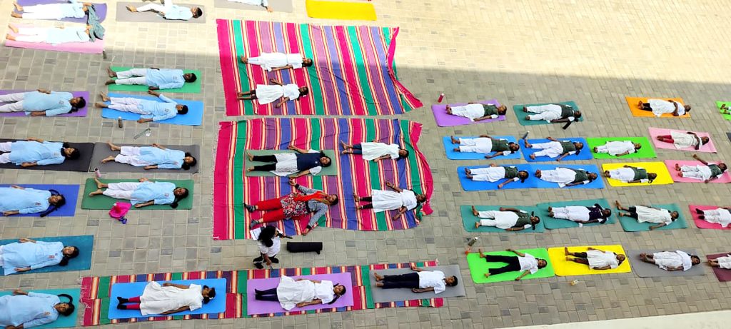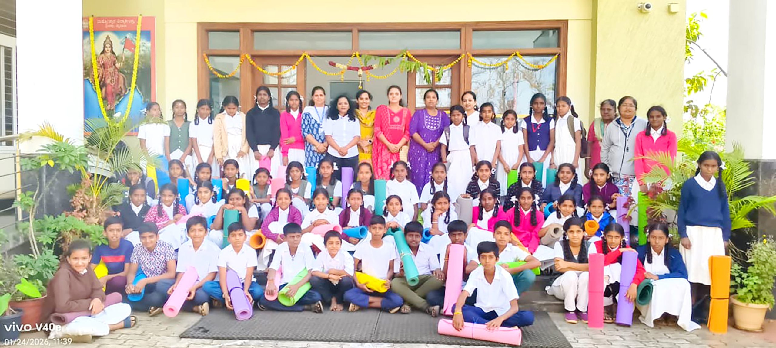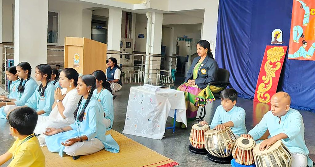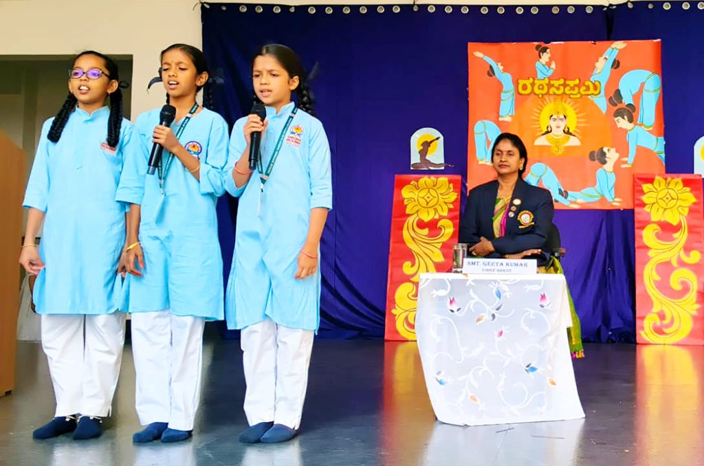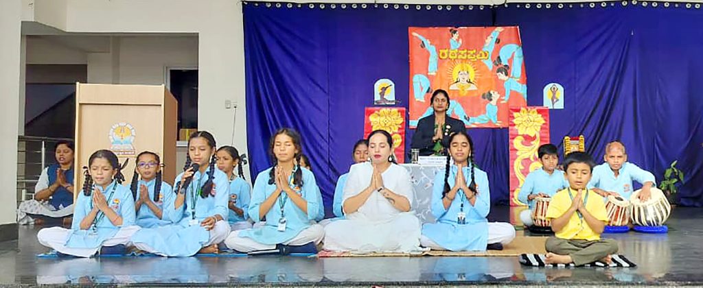 Mysuru, Jan. 24: Rath Saptami was celebrated herein Rashtrotthana Vidya Kendra – Srinagar. The chief guest was Smt. H.K. Geetha Kumar, National Yoga Judge and Secretary of Yoga Sports Foundation. Under the guidance of Yoga teacher Smt. Maithravathi T.P., a mass Surya Namaskar was conducted in an organized manner. About 60 students of GHPS Sindhuvalli and GHPS Dadadahalli, who are receiving free yoga education under the Rashtrotthana Seva Prakalpa, also participated in the program and participated in the mass yoga session. The chief guest spoke about the religious and scientific significance of RathSaptami. Encouraging the students to adopt a healthy lifestyle through yoga, also she appreciated the services of Rashtrotthana Vidya Kendra, which provides free yoga training to government school children. During the break between the Surya Namaskar sessions, rock sugar and jaggery were distributed to the students. At the end of the program, members of the school’s Matru Bharati team served buttermilk and kosambari to all the participants.