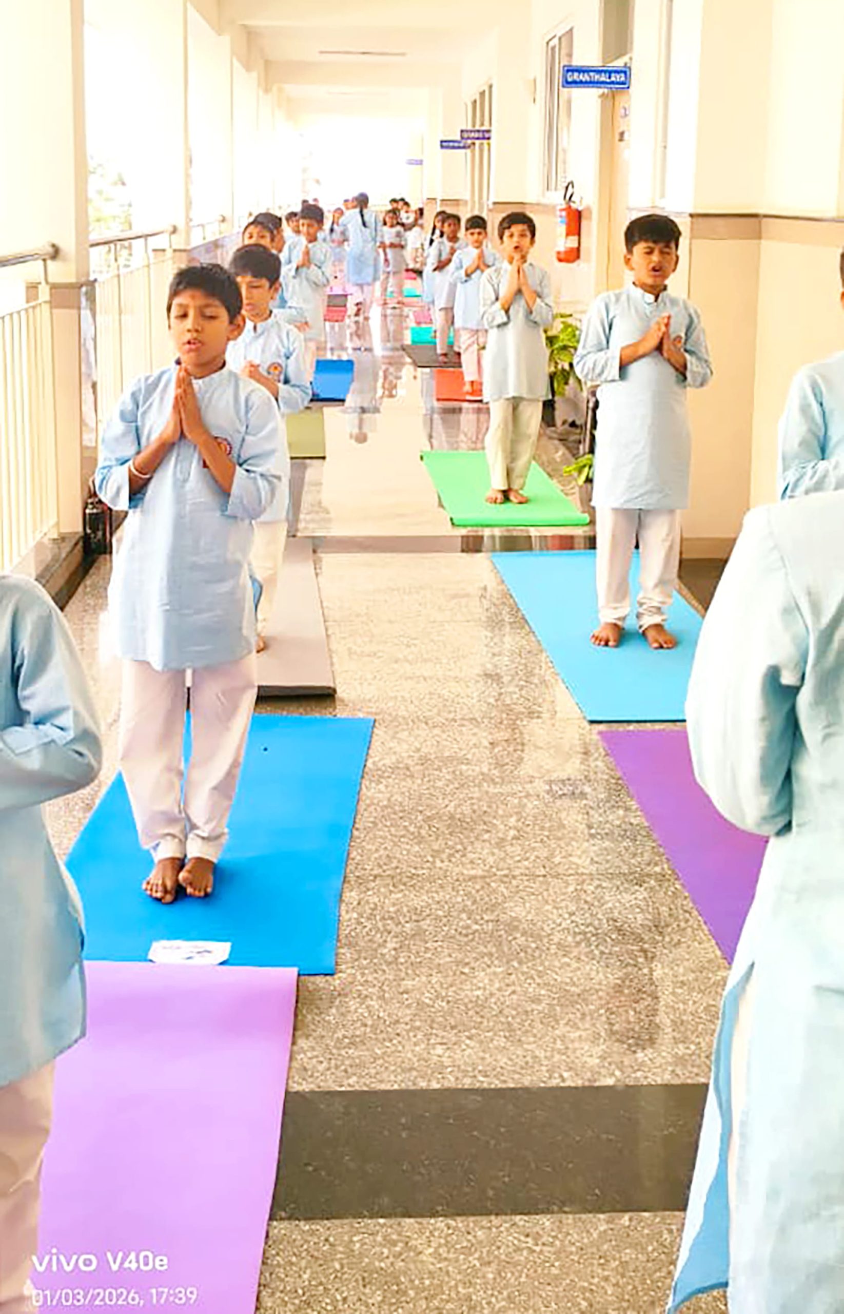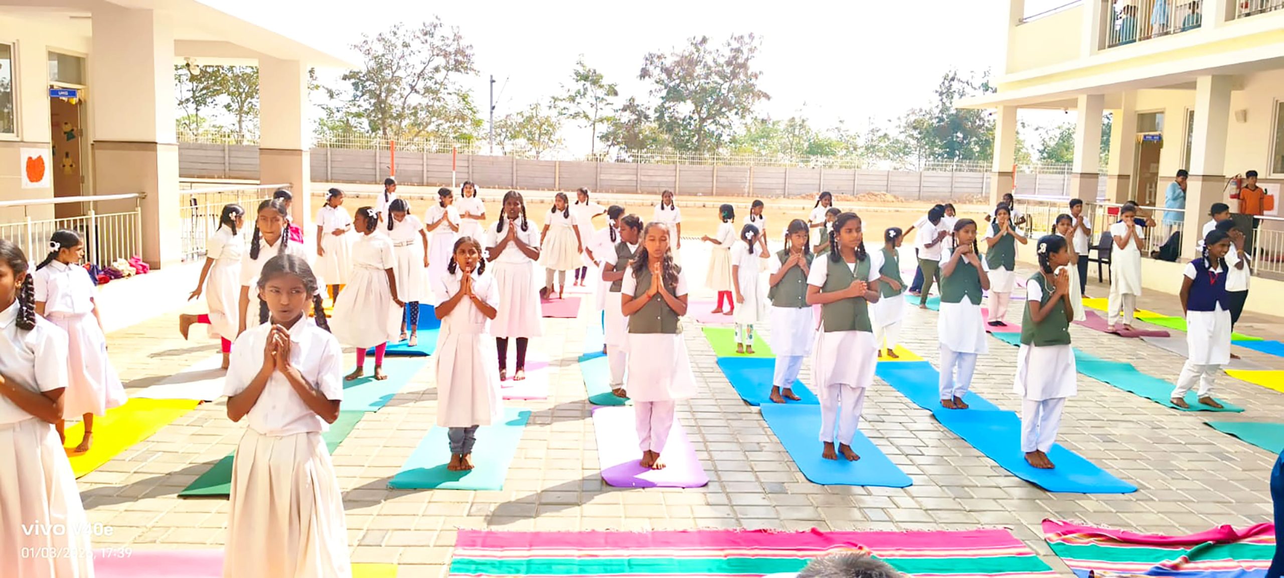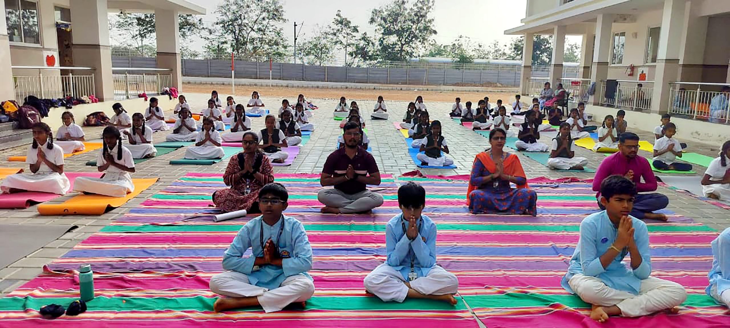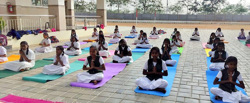 Mysuru, Jan. 24: Rath Saptami was celebrated herein Rashtrotthana Vidya Kendra – Srinagar. The chief guest was Smt. H.K. Geetha Kumar, National Yoga Judge and Secretary of Yoga Sports Foundation. Under the guidance of Yoga teacher Smt. Maithravathi T.P., a mass Surya Namaskar was conducted in an organized manner. About 60 students of GHPS Sindhuvalli and GHPS Dadadahalli, who are receiving free yoga education under the Rashtrotthana Seva Prakalpa, also participated in the program and participated in the mass yoga session. The chief guest spoke about the religious and scientific significance of RathSaptami. Encouraging the students to adopt a healthy lifestyle through yoga, also she appreciated the services of Rashtrotthana Vidya Kendra, which provides free yoga training to government school children. During the break between the Surya Namaskar sessions, rock sugar and jaggery were distributed to the students. At the end of the program, members of the school’s Matru Bharati team served buttermilk and kosambari to all the participants.