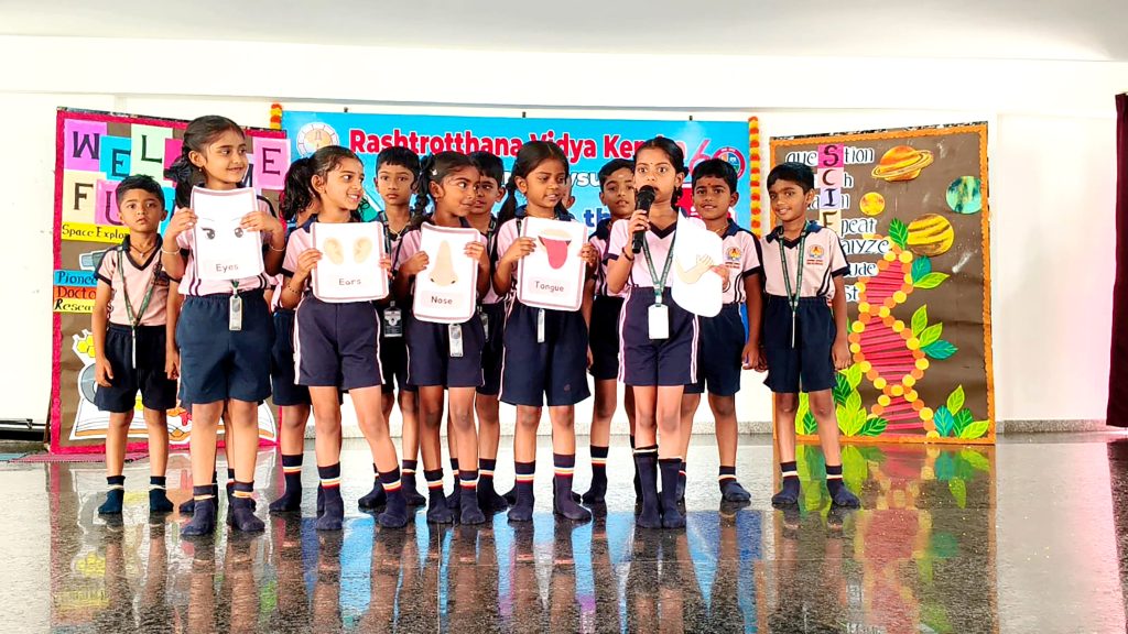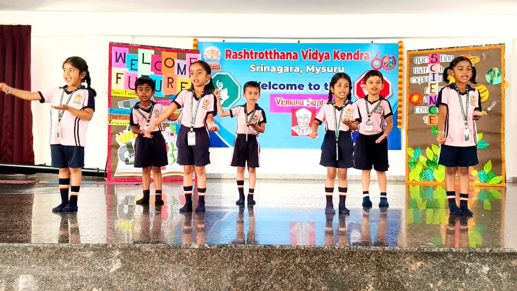 Mysuru, Mar. 6: The second day of Science Week at Rashtrotthana Vidya Kendra – Srinagar was marked with a session on the topic of “Eclipses” by Sri S.N. Prasad, who explained what eclipses are and discussed various types of eclipses, including solar and lunar eclipses. To make the session more interactive and practical, the students were allowed to view the Gopura (tower) of Chamundi Temple through telescopes.