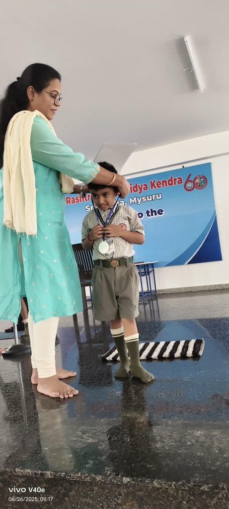 Mysuru, June 27: Samarth Bharadwaj M S, a 6-year-old student of Rashtrotthana Vidya Kendra – Srinagar has showed outstanding performances in Wizkid’s carnival’s All India Kids Premier League March 2025 Challenges.