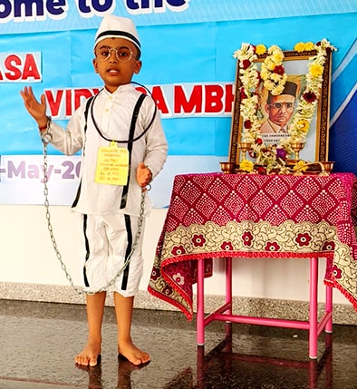 Maitreyi of class 1 dressed up as Savarkar and recited his words. Ayush of class 7 shared a brief information about Savarkar.