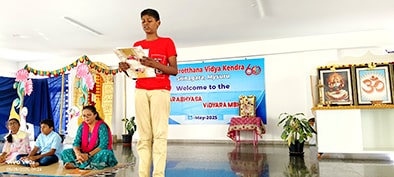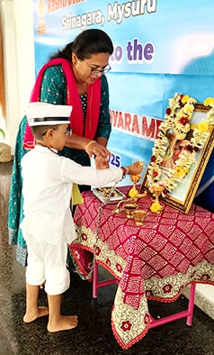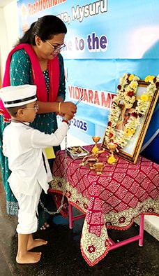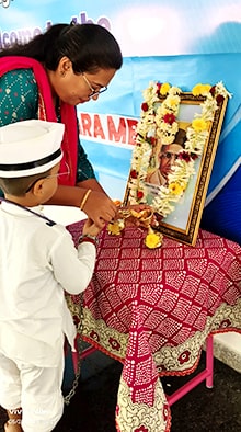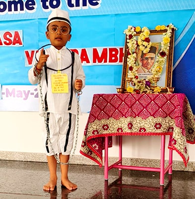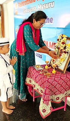 Mysuru, May 28: Veer Savarkar Jayanti was celebrated at Rashtrotthana Vidya Kendra – Srinagar.Maitreyi of class 1 dressed up as Savarkar and recited his words. Ayush of class 7 shared a brief information about Savarkar.